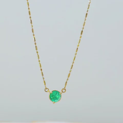 La esmeralda, se convierte en el punto focal de esta joya, aportando elegancia y un toque de color refinado, este collar se adapta perfectamente al cuello, siendo ideal para llevar solo o en combinación con otras piezas delicadas.