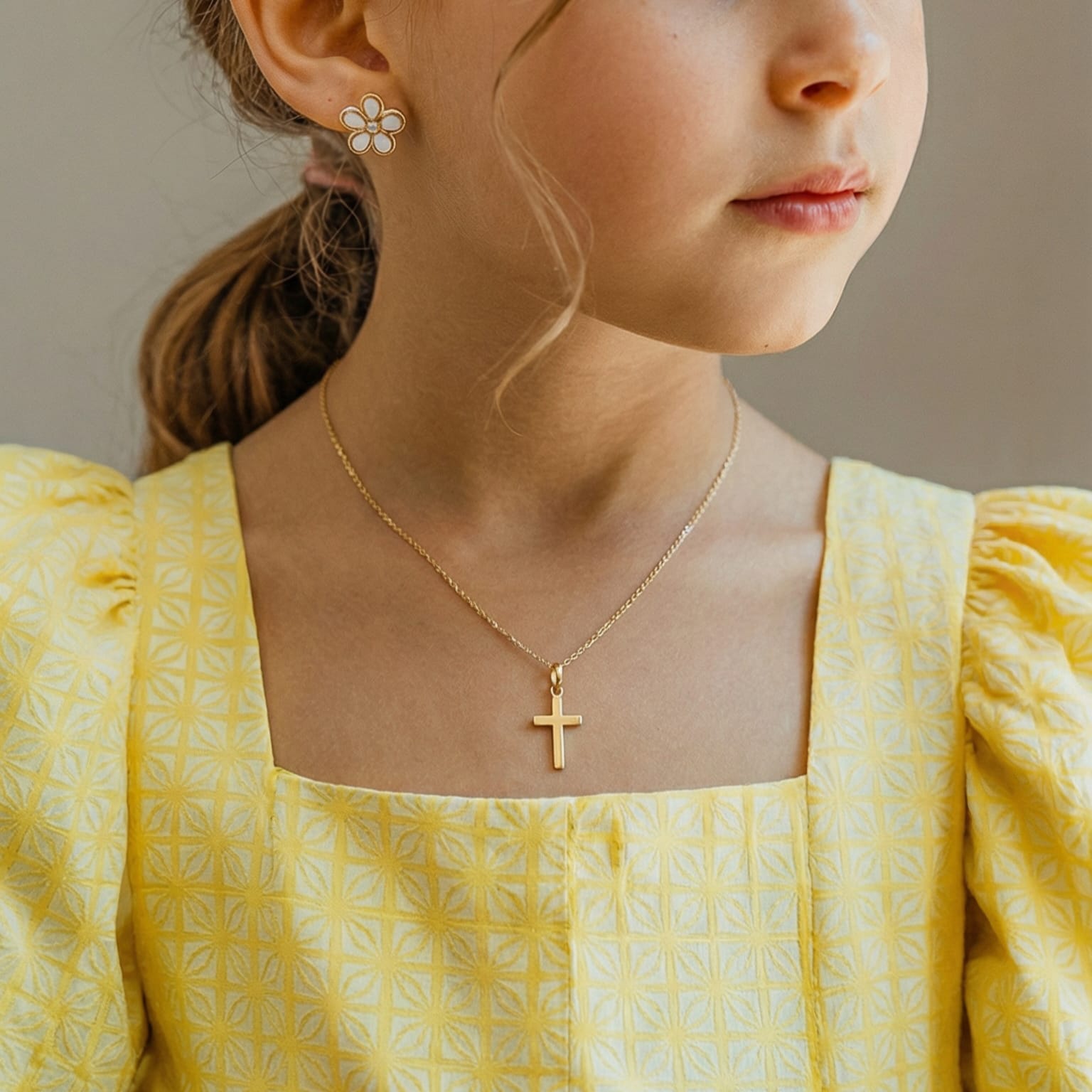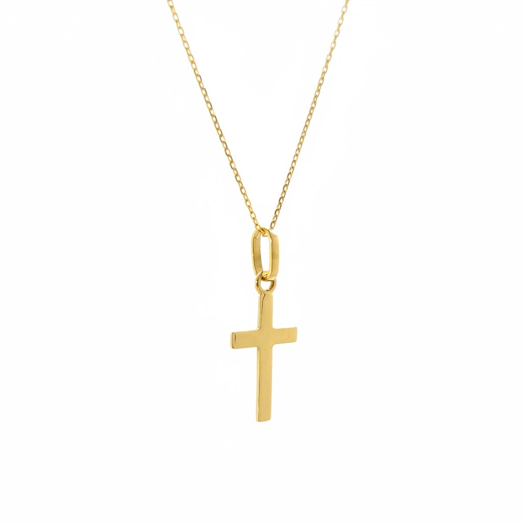 Un símbolo atemporal de fe y elegancia. Este delicado dije de cruz está elaborado en oro amarillo de 18 quilates, con un acabado pulido que realza su brillo cálido y sofisticado.
